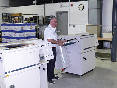 Manuel Duran works with Copresco's automated Alpha-Doc punching systems for large plastic coil bound projects.