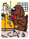 Ralph dropped some coins on the floor, but before he could pick them up, his dog ate them. Worried about his dogs health, Ralph took his dog into the vet, who suggested he leave him overnight. The next morning, Ralph called to see how his dog was doing. The vet replied, No change yet. |